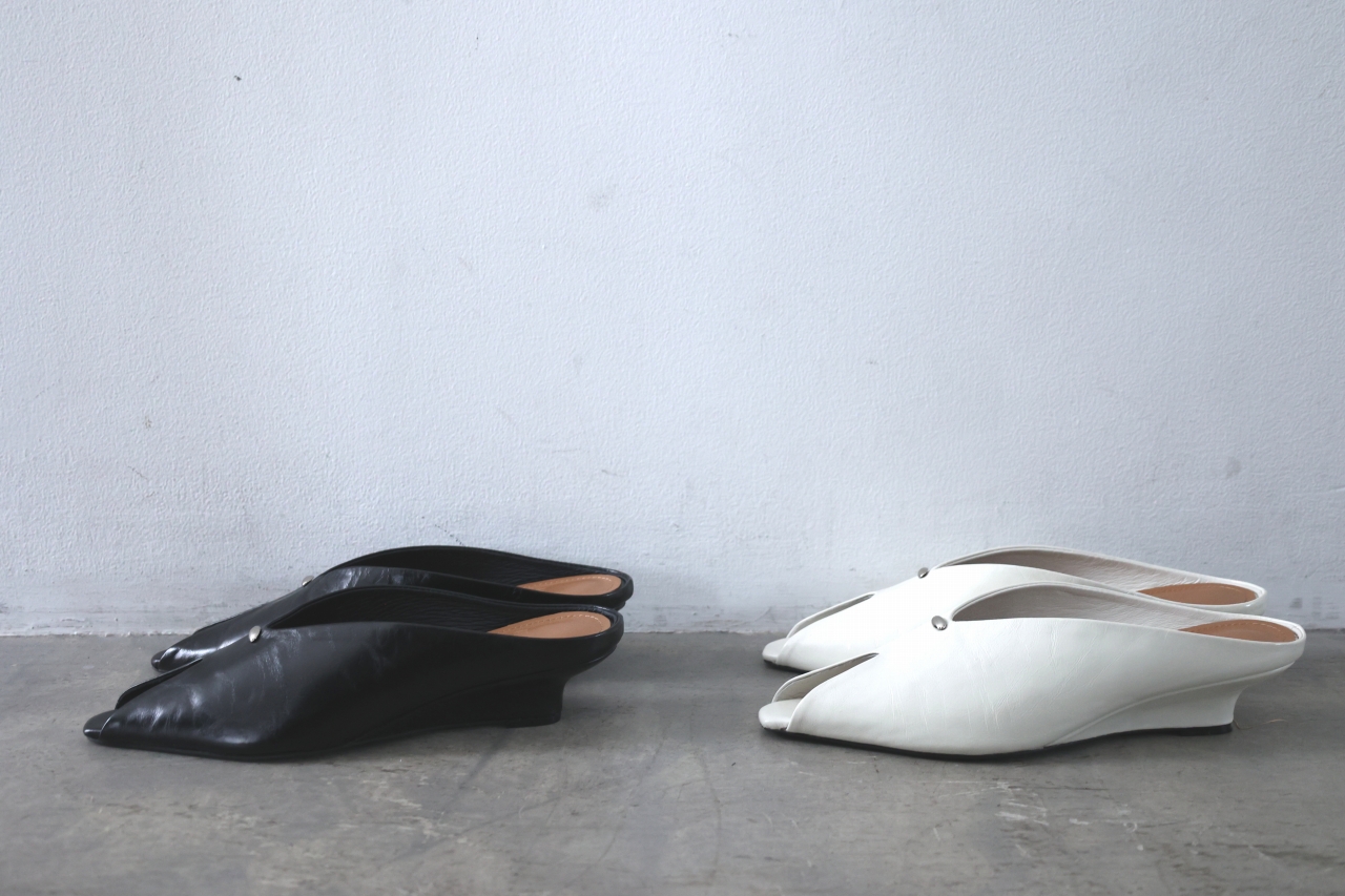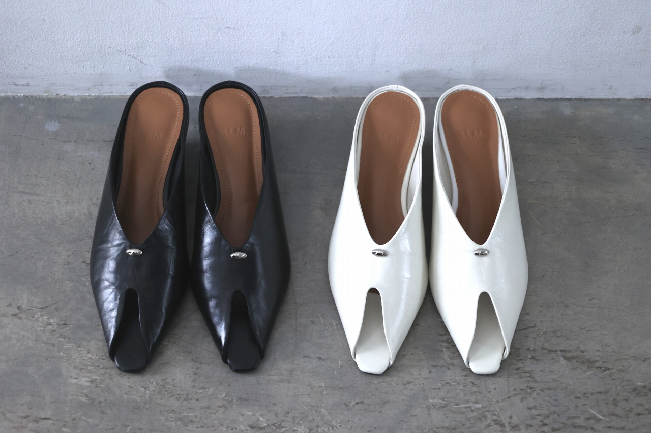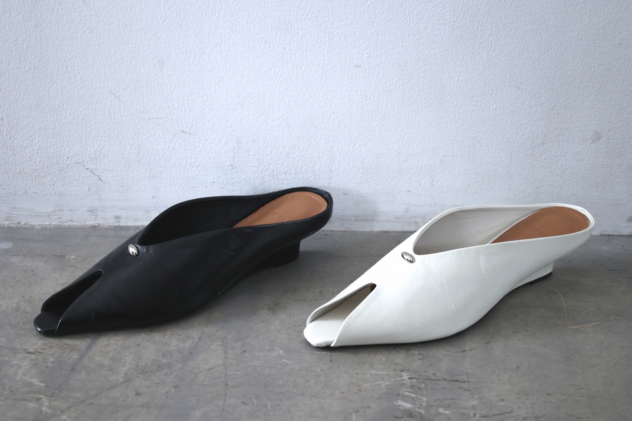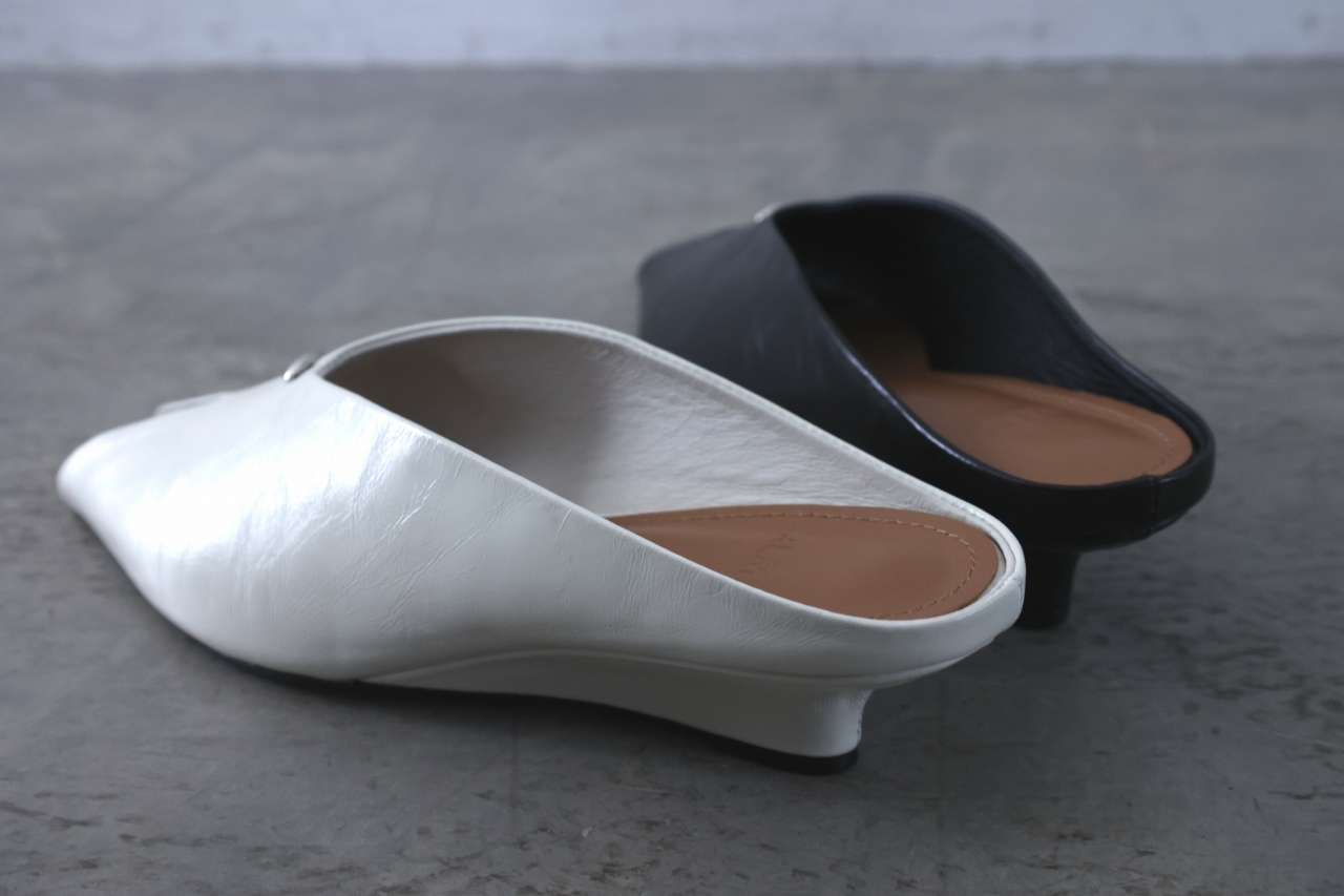 ピープトゥ(小さ目のオープントゥ)デザインのミュール。