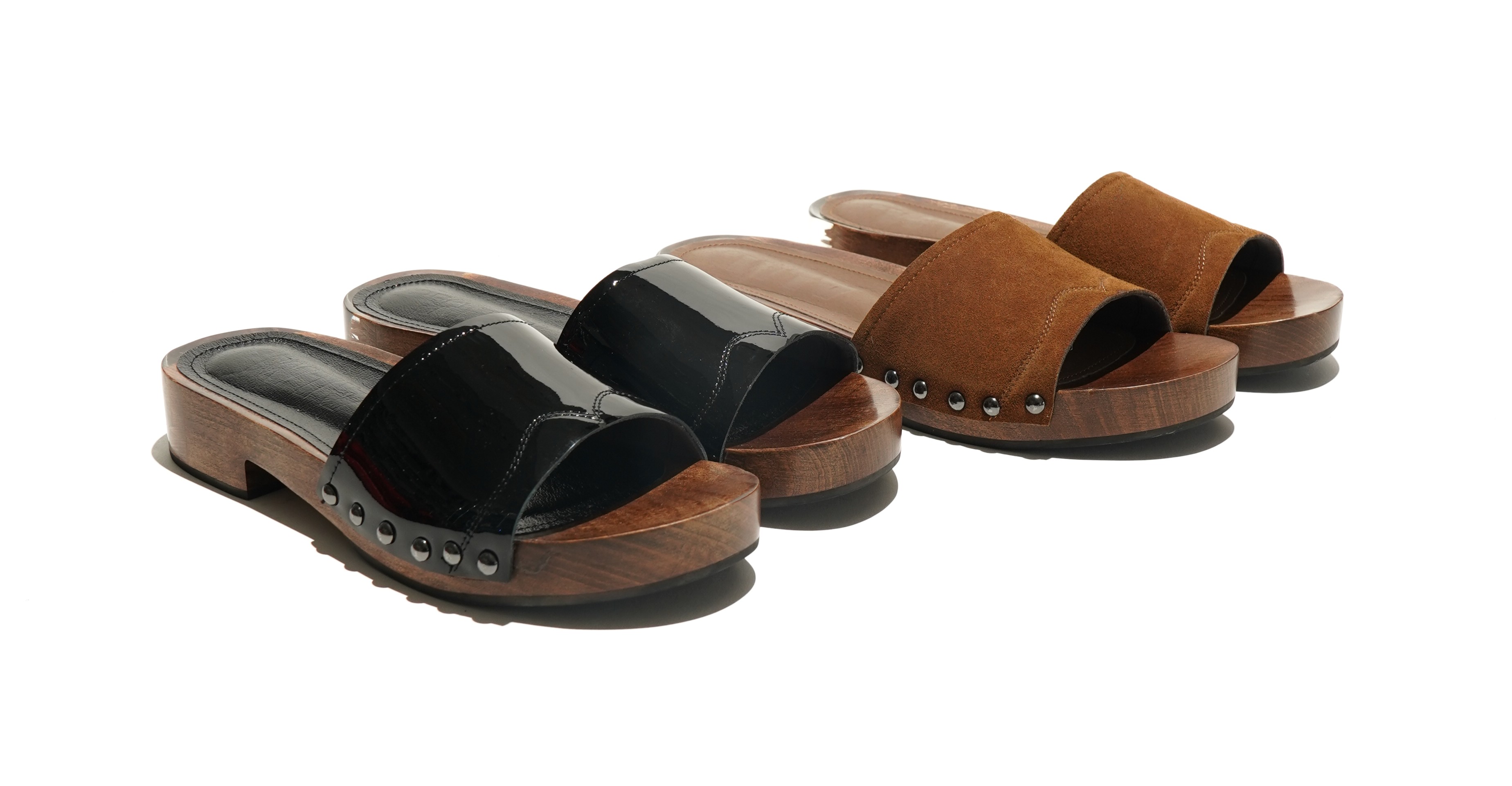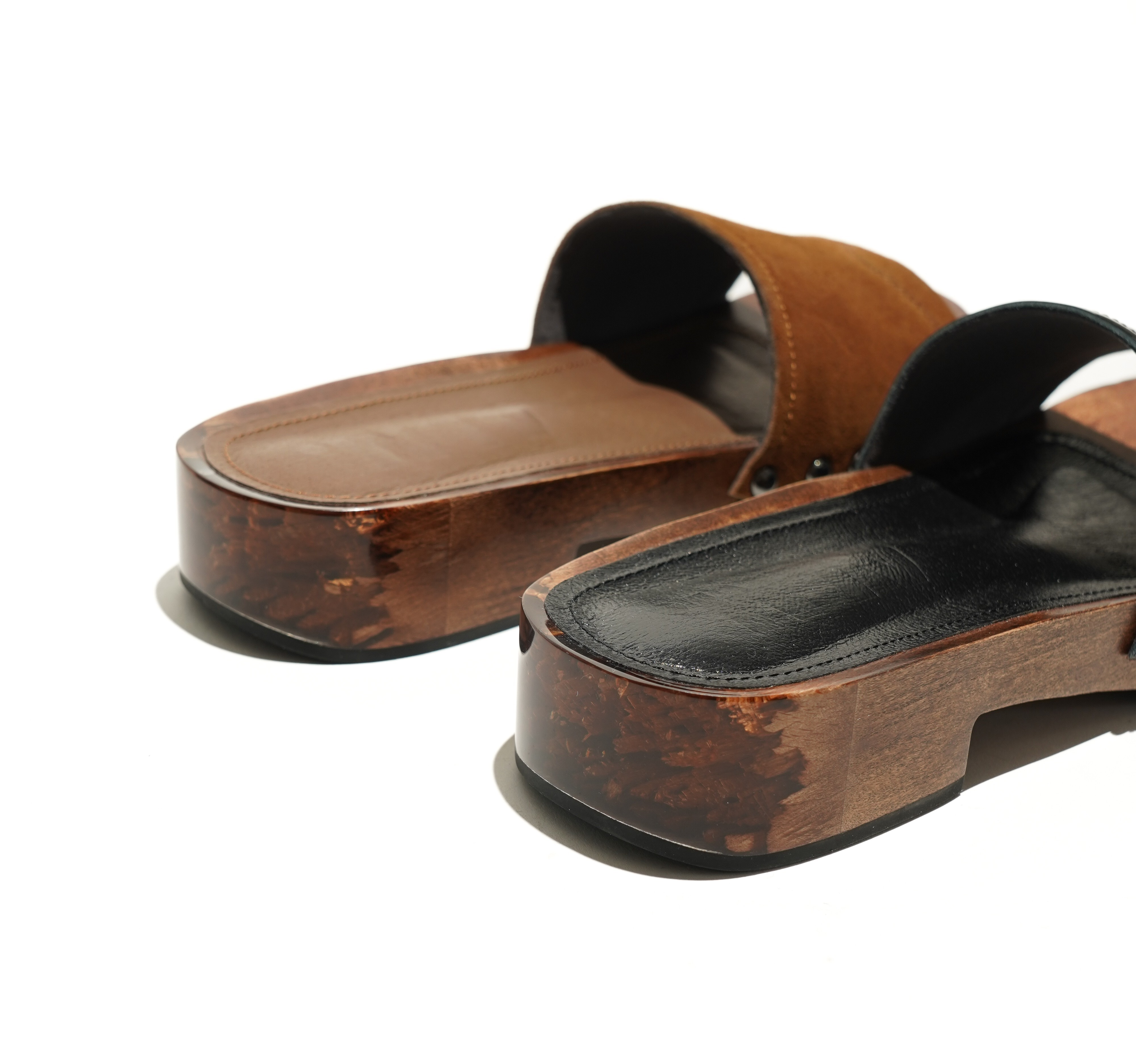 ALM定番のオブジェ加工を施したWOODソールのクロッグサンダル。